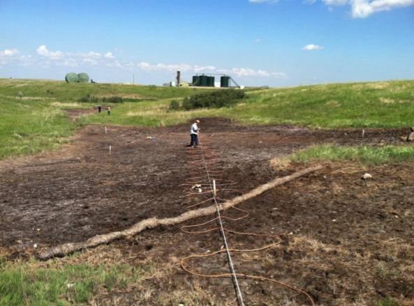 Produced brine water leaked from a disposal pipeline and impacted the surrounding soil, groundwater, and nearby creek. Earth Systems used a geophysical survey including Electro-magnetic (EM) and Electrical resistivity (ER) to non-intrusively assess the horizontal and vertical extent of impacts. Geochemical mechanisms prohibiting plant growth at the site were assessed with surface soil sampling. The nature and extent of groundwater impacts were assessed by installing and sampling monitoring wells.